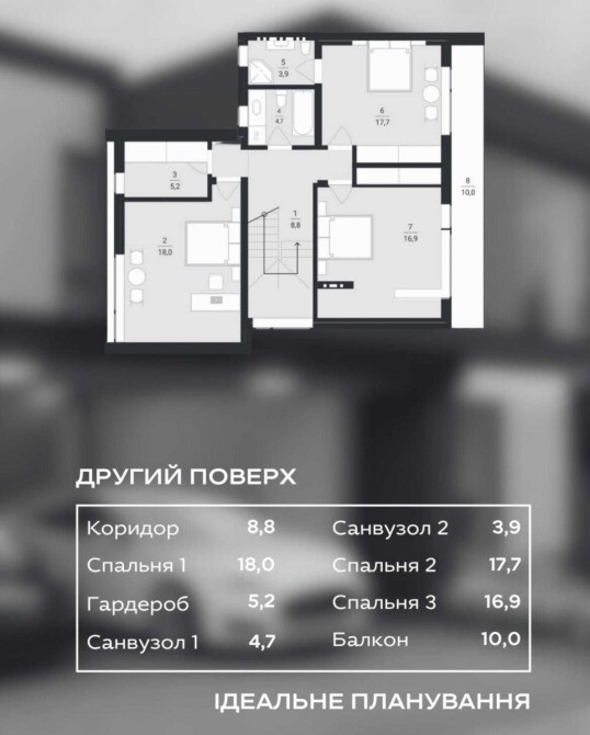 Другий поверх: три житлові кімнати, два санвузли, дві гардеробні, вихід на балкон, можливість облаштування тераси