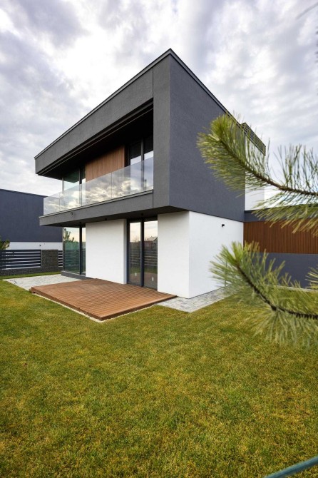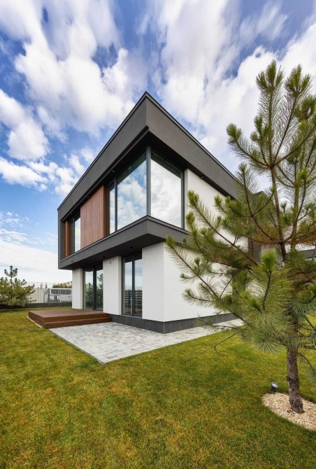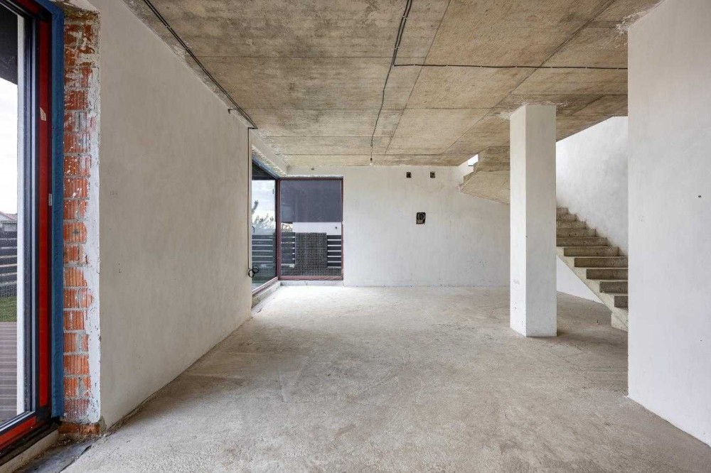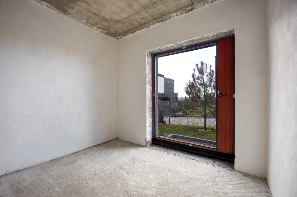 Будинок в 0-циклі, тобто ще без ремонту. Залита цементна стяжка на підлозі, поштукатурені стіни, встановлені алюмінієві вікна Reynaers, вхідні двері. Будинок зовні утеплений пінопластом 15 см. Фасадна, терасна дошки - термоясен.