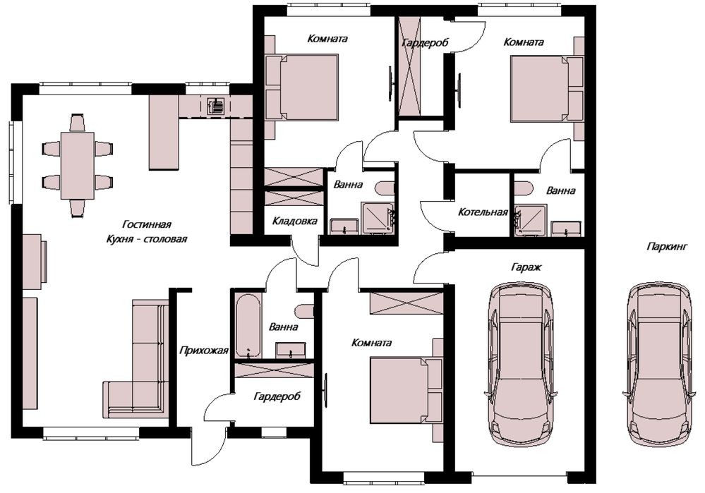 • Трехкомнатная