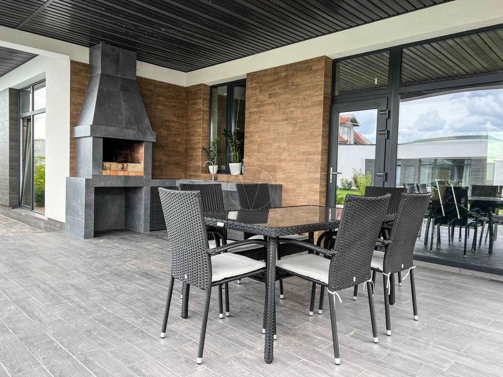 На терасі стаціонарний мангал, освітлення, гаряча та холодна вода. Гараж із автоматичними воротами, крите місце для паркування другого автомобіля.