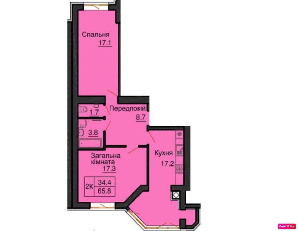 • Общая площадь 65.8 м2
