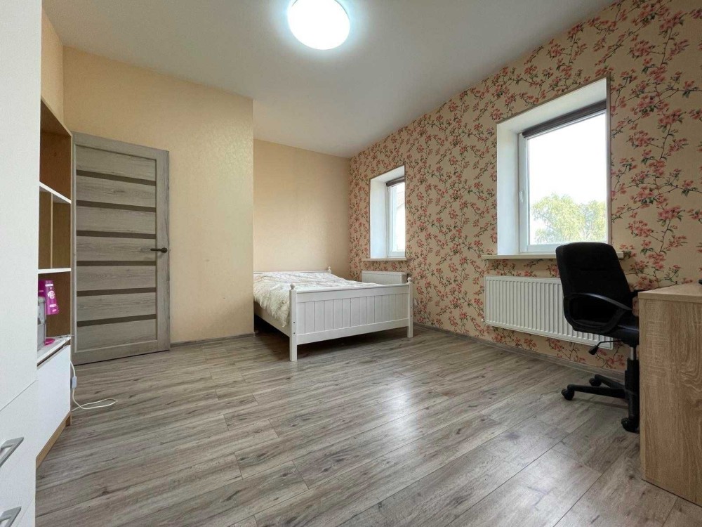 Другий поверх 70 мкв, три спальні, один хол. Фундамент з утепленням та гідроізоляцією. Стіни: 1й поверх- цегла з проміжком із перліта. 2й поверх- піноблоки з утепленням всередині мінватою 10 см. Фасад будинку утеплений термопанелями. Горище 30 см мінвати, дерево оброблене. Теплі бронедвері 100 мм. Двір 190 мкв, бруківка. Якісна електріка, тепла підлога (хол, ванна кімната, туалет, кухня). Віддалений відеонагляд, інтернет.