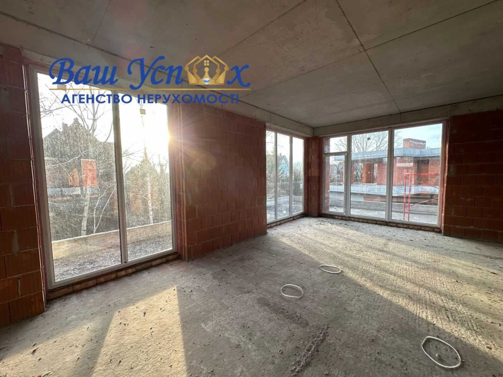 БЕЗ%, будинок 190м2, Віта Поштова, СТ «Хуторець», навколо ліс, 9 км Київ та м.Теремки, Одеська траса Загальна площа будинку - 190м2. Площа земельної ділянки 10.38 соток. Будинок знаходиться в затишному та мальовничому місці, між Вітою Поштовою та Тарасівкою, оточений дорослим хвойним та листвяним лісом, з власним виходом на озерце. Побудований на пагорбі, дає можливість насолоджуватись неперевершеним видом на ліс та озеро, крізь великі панорамні вікна будинку 24/7. Раціональне та комфортне планування, великі, світлі та просторі кімнати з панорамними вікнами. 1й поверх: столова – вітальня, кухня, гердероб, санвузол, гараж, котельня; 2й поверх: три окремі спальні кімнати, санвузол. Об’єкт для поціновувачів заміської тиші та ранкових піщих прогулянок!