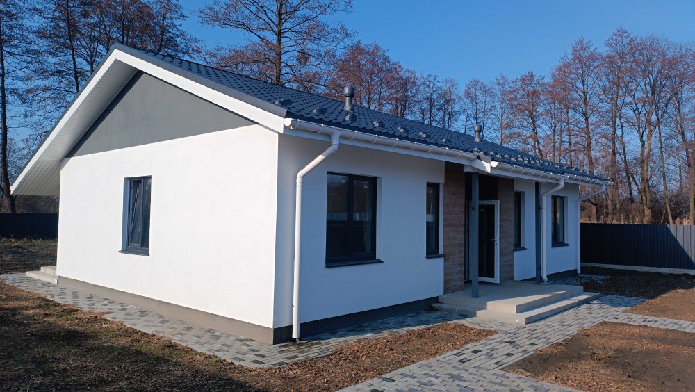 Будинок на завершальній стадії з продуманим плануванням для комфортного проживання родини. Три спальні, окремий санвузол, велика кухня-вітальня, з великою кількість скління, що забезпечую багато світла в приміщенні. Висота стелі 3 метри. В вартість входить паркан навколо ділянки відкатні ворота, септик, свердловина, мощення бруківкою, електроенергія 3 фази 15квт