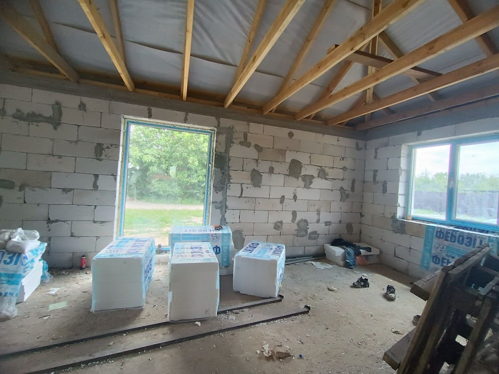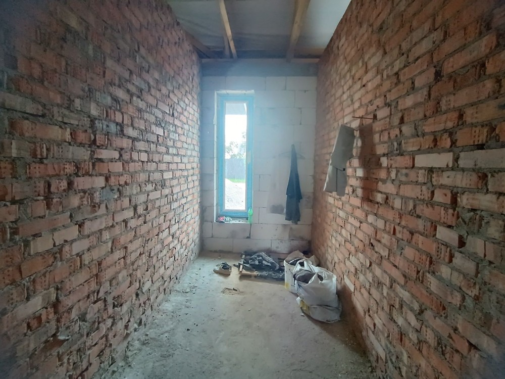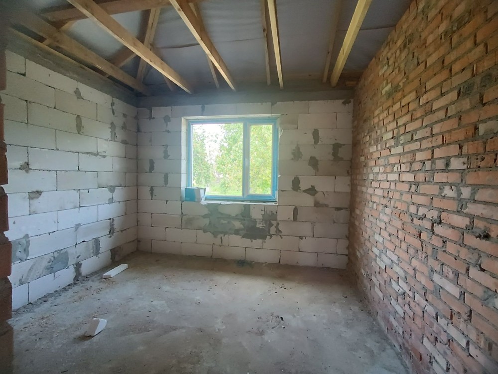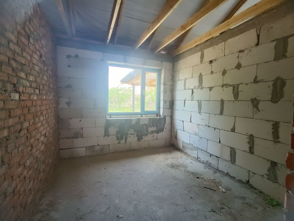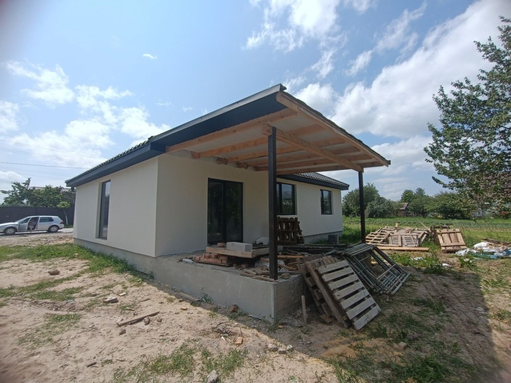 3 роздільні кімнати, велика кухня вітальня 30 м2 з виходом на терасу, санвузол та бойлерна. Комунікації: світло 15 кВт, септик, свердловина.