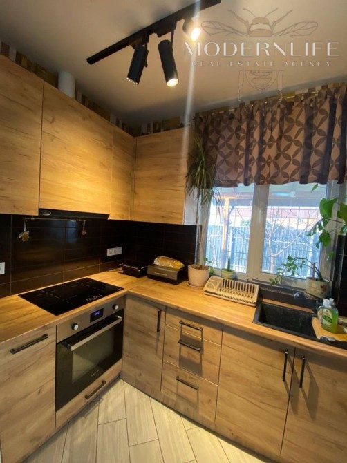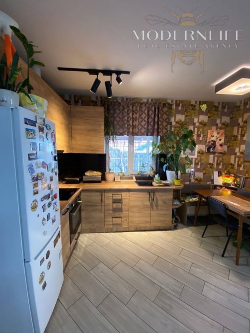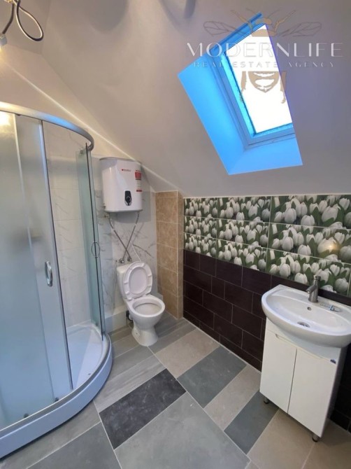 • Перший поверх (60 м²): санвузол, кухня-гостиная та кімната — повністю зроблений сучасний ремонт