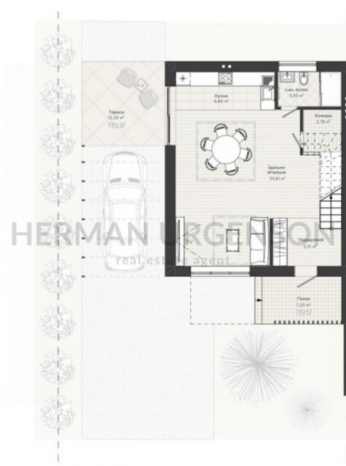 Планування: кухня-вітальня, 3 спальні, 2 ванні кімнати, комора, балкон, тераса.