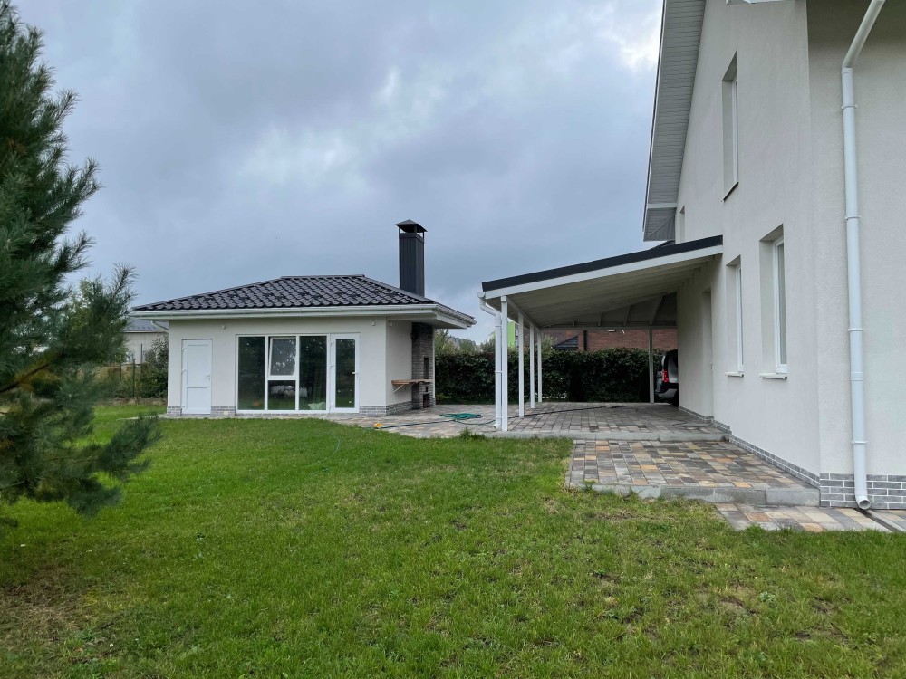 Просторий сучасний будинок у с. Нове (біля Боярки), лише 15 хв до м. Теремки, 12,99 соток землі, розкішна тераса, гостьовий будиночок, монолітний підвал, ландшафтний дизайн, тепла підлога, камін — усе готове для вашого комфортного життя!