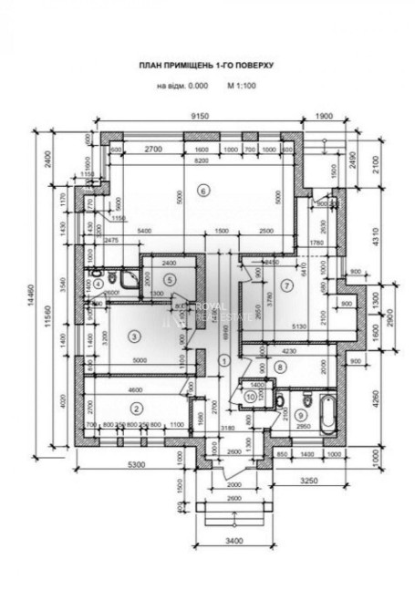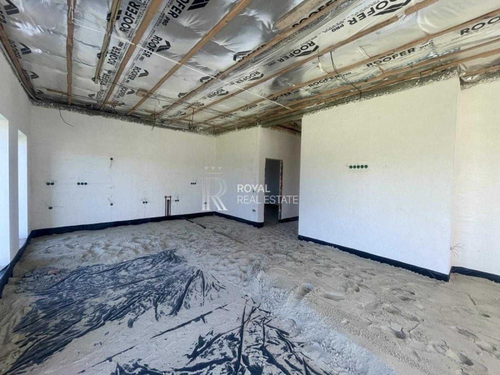 Вхідна група, 2 санвузли, технічне приміщення (котел, фільтри для води), 2 гардеробні, 3 спальні (одна зі спалень зі своїм санвузлом і окремою вбиральнею), дитяча, камінний зал, кухня-студія з панорамними вікнами.