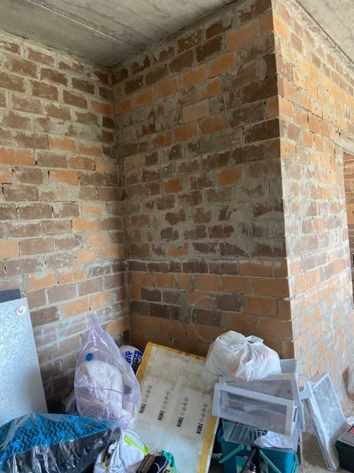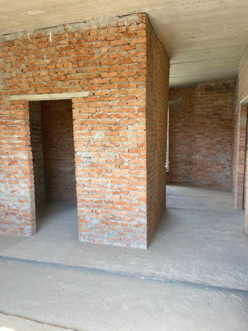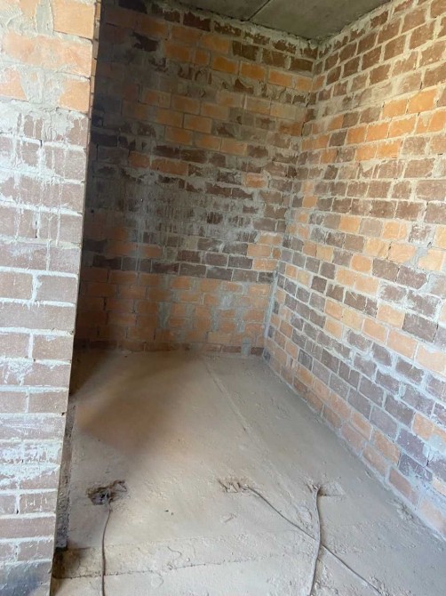 4 кімнати і вітальня, висота стелі 3 м., стіни червона цегла, облицювання клінкерна цегла.