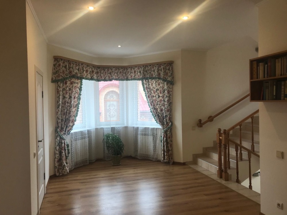 Площа будинку 438 кв.м. 3 поверха. На цокольному рівні - гараж з автоматичними воротами на 2 машини, спортзал та підсобні приміщення. На першому поверсі – затишна вітальня з каміном на дровах та виходом на терасу, кухня-їдальня, кабінет/гостьова спальня, пральна та с/в. На другому поверсі – простора господарська спальня з гардеробною та с/в, 2 дитячі кімнати з гардеробними, хол та ванна кімната. Мансарда – кімнати вільного призначення. Будинок продається з усіма меблями та технікою.
