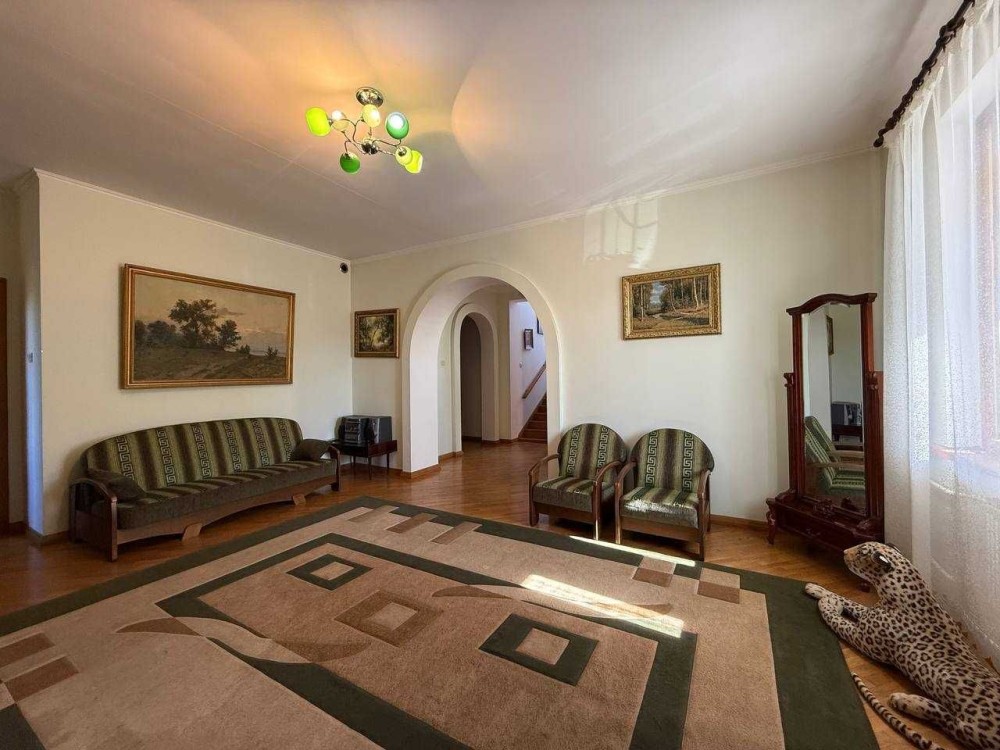 Продам якісно збудований будинок, загальною площею 547,9м2, житлова площа 167,5м2, кухня 23,7м2, у с.Ворзель, Київської обл., по вул.Квітковій - підійде для дитячого садка, реабілітаційного центру, пансіонату. Будинок збудований 1995 року з цегли, перекриття між поверхами залізо-бетонне, дах - шифер. Цоколь: гараж, три кімнати. Перший поверх: кухня-студія, зал, кабінет, коридор, санвузол. Другий поверх: санвузол, коридор, шість кімнат, одна з яких має балкон. Мансарда: дві кімнати. Ділянка 10 соток, приватизована. Молодий сад, доглянуті клумби з елітними трояндами. На ділянці в 2002 році збудований будиночок (50м2) для персоналу, в будиночку (кухня-студія, спальня, санвузол).
