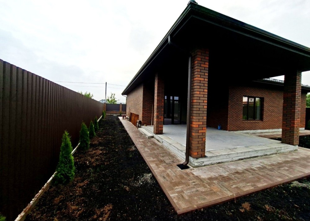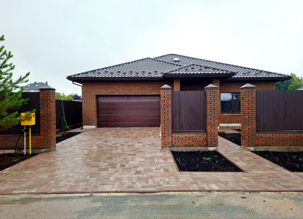 Фасад будинку з облицювальної цегли темного сучасного кольору.