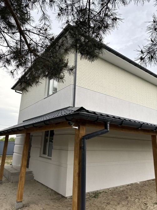 Продається сучасний двоповерховий будинок з терасою в селі Бобриця, Київська область (біля Білогородки), зручний виїзд на Житомирську трасу, 20–30 хвилин до Києва.