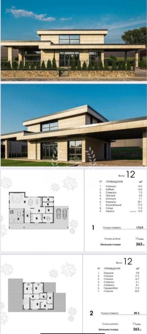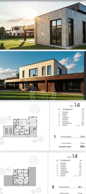 Комплекс налічує 14 двоповерхових котеджів у стильній сучасній архітектурі, кожен — з власною земельною ділянкою (11–13 соток) та просторою відкритою терасою для відпочинку просто неба. Площі від 262 м² – 267 м².