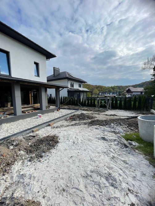 В ціну входить, бруківка [ЕФЕ], озеленення, паркан (бетон + металеві ламелі), відкатні ворота