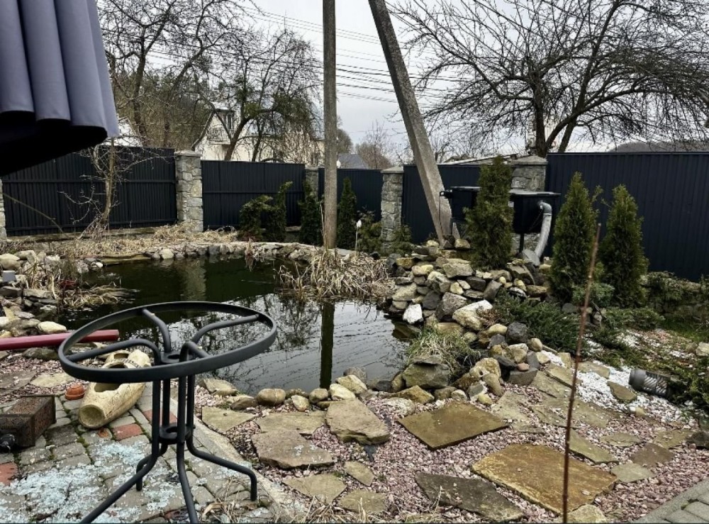 Територія поруч будинку облаштована красивим ландшафтом, маленьке озерце на подвірʼї, мангал на зона для відпочинку, декоративні дерева і композиції.