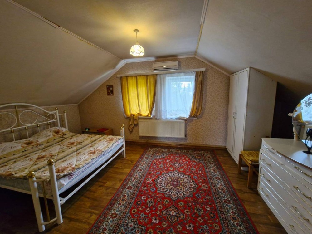 Продам капитальный дом-дачу в 4 этажа размерами 6,4 х 8,8 м расположенном в спокойном районе на живописном берегу Хаджибейского лимана Раздельнянского района Одесской обл. в 45 км от Одессы по Киевской трассе с участком. Торг возможен. Дом предназначен для постоянного комфортного проживания и отдыха в любое время года, построен для себя с любовью и теплом общей площадью – 193.5 кв.м, из них жилая – 77.3 кв.м., другие – 116.2 кв.м. Рядом село Бурдовка, где есть несколько магазинов, детский сад, школа и постоянно ходят маршрутки. Дом расположен на приватизированном участке площадью 12 соток з посаженными различными плодовыми и декоративными деревьями, виноградом разных сортов, (площадь участка фактически больше и есть возможность расширения). Акт приватизации - серия ПЛ №519264, кадастровый №5123981700:01:004:0608. На участке растет все что посадишь при надлежащем уходе, деревья на участке старые и требуют омоложения. К дому подведено электричество, водоснабжение и рядом на столбах электроснабжения смонтирована линия кабельного интернета и телевидения – возможно подключение к дому. Во дворе расположен колодец-чаша на 7 куб. м, который может заполняться от системы водоснабжения массива. Дом построен з ракушняка и обложен селикатным кирпичом с тепловым зазором для лучшего сохранения тепла. Потолки утеплены пенопластом. Все входные двери дома металлические и обшитые деревом. Окна з двойным остеклением и установленными защитными металлическими решётками. Крыша з керамической черепицы. Установлена автономная солнечная электростанция мощностью 2.4 квт с автоматическим переходом на сетевое напряжение в случае повышенной нагрузки на сеть дома. Установлена система охраной сигнализации оборудованная датчиками движения и видеокамерами по периметру дома. Извещения от сигнализации приходят на смартфон. С него также возможно управление самой сигнализацией, освещением комнат дома, включение электрокотла отопления, полив участка и т.д. Телевизоры в доме работают от обычной и спутниковой антенн. Дом оборудован системой канализации для отвода сточных вод и системой водоснабжения от напорного бака расположенного на крыше дома и заполняемого насосом из колодца или непосредственно от системы водоснабжения кооператива. Вода в системе дома греется электробойлером. Дом отапливается системой водяного отопления с автоматизированным электрокотлом поддерживающим температуру в доме на автомате и также работающего на твердом топливе и обычной печкой на твердом топливе з духовкой. Система водяного отопления имеет принудительную циркуляцию насосом для быстрого прогрева дома и заполнена антифризом. Первый уровень дома расположен практически в земле, где находятся: 1) - гараж пл. 23,7 кв. м с местом для автомобиля и хранения различного оборудования, стройматериалов, комбинированного деревообрабатывающего станка (строгание, фрезерование, циркулярка, наждак) и т.д.; 2) - электросауна пл. 3,8 кв. м с регулируемой мощностью 5 квт и с помещением душа пл. 3,3 кв. м; 3) - подвал пл. 11,0 кв. м для хранения урожая и консервации, дубовых бочек для вина и различных ёмкостей; 4) лестница и вход на второй уровень; 5) - на входе в гараж слева и справа расположены 2 подсобных помещения для хранения угля, дров и сельхозинвентаря площадью по 3,45 кв. м каждое. На втором уровне расположены: 1) - коридор пл