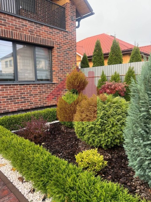 Цілодобовий відеонагляд будинку та території, ландшафтний дизайн, автомат ворота, автоматичний полив газону, вечірнє освітлення всього будинку та території.