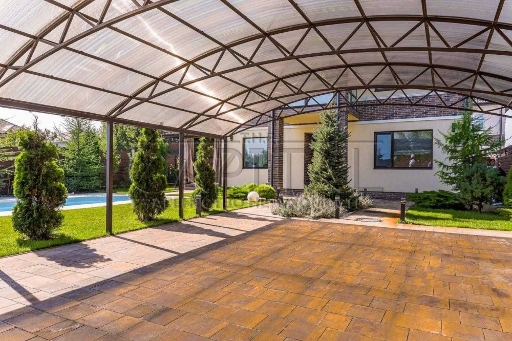 Є басейн з підігрівом води та протитоком. Встановлено навіс для двох і більше авто.