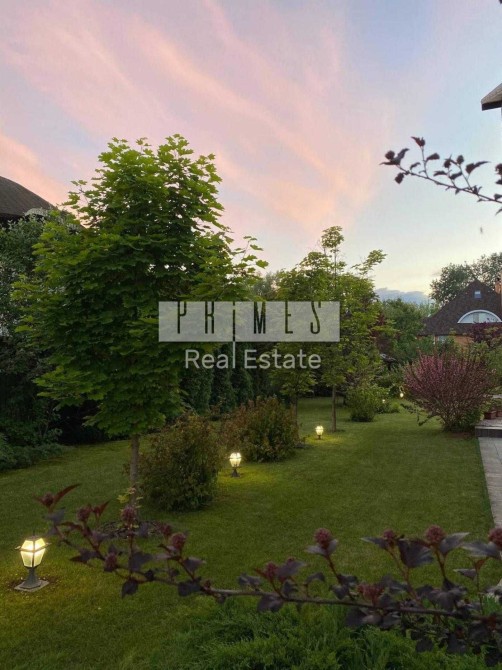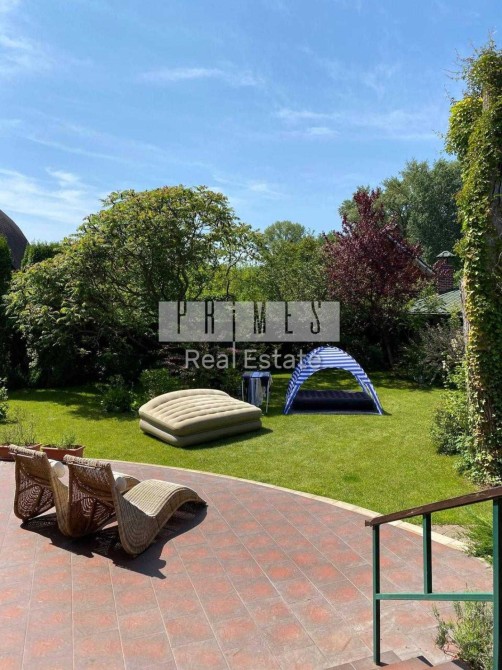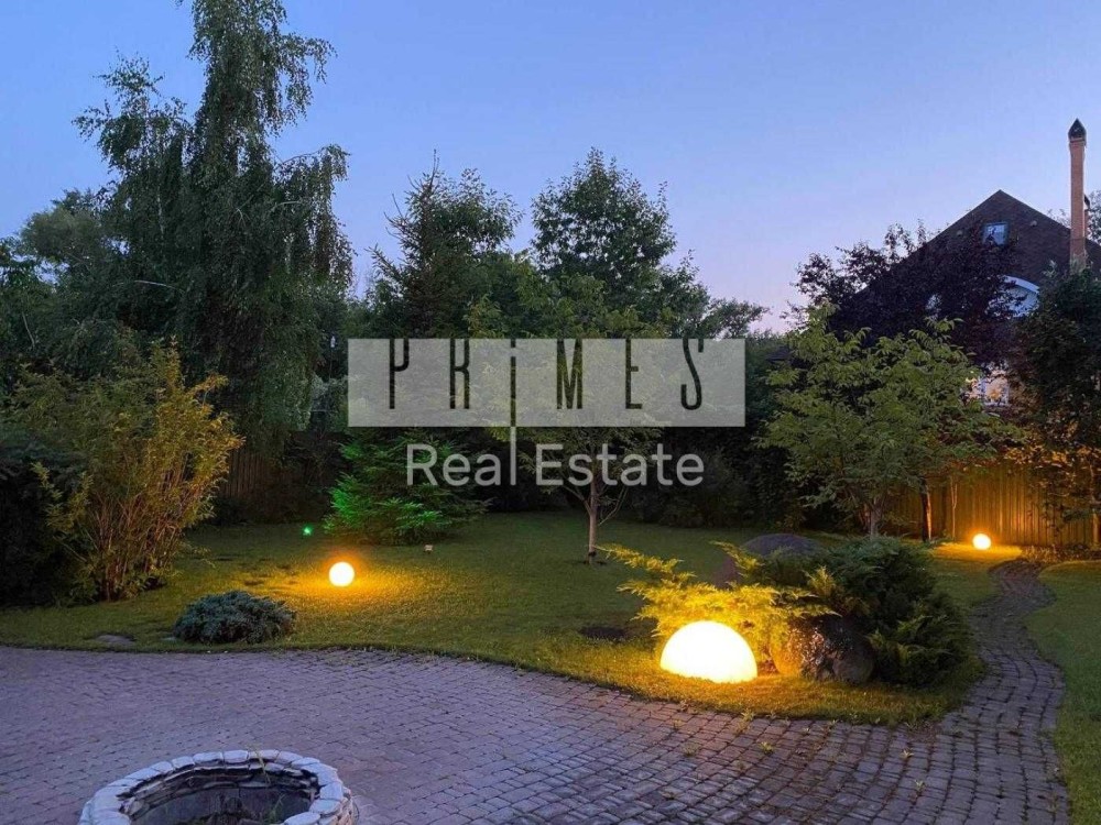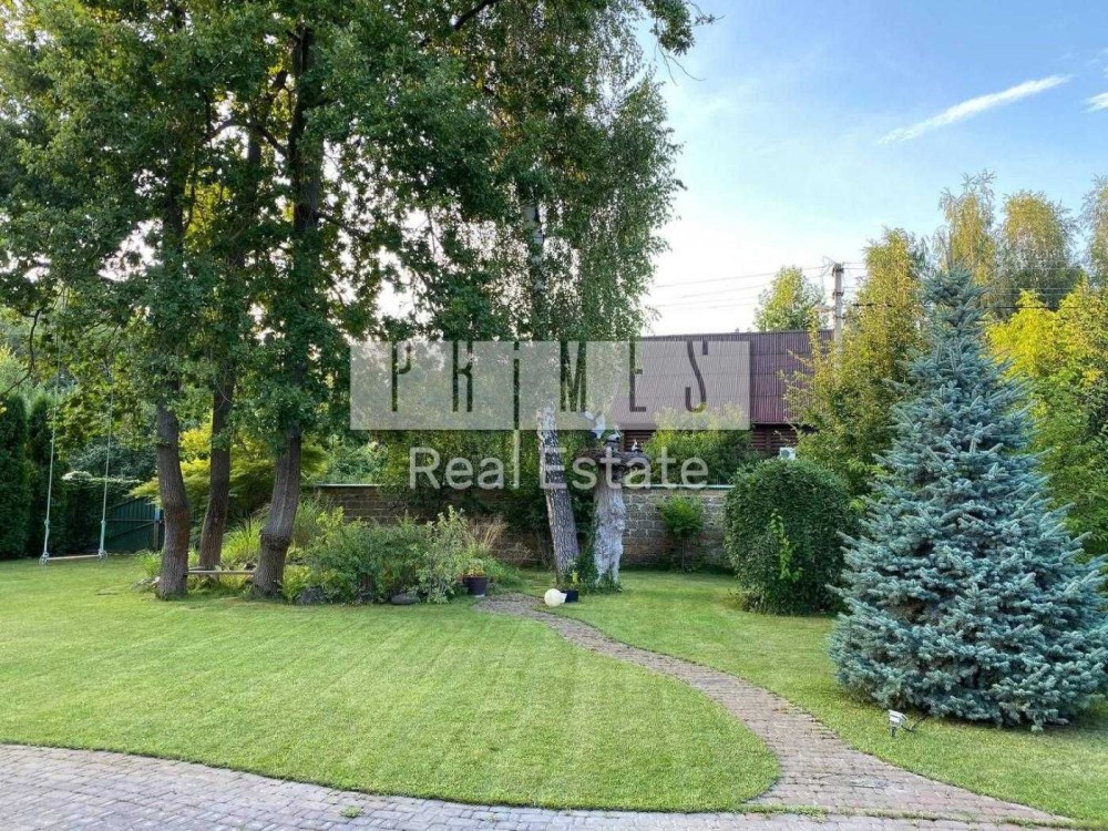 Надзвичайно зелена та простора ділянка з ландшафтним дизайном. Дуже багато вічно зелених насаджень.