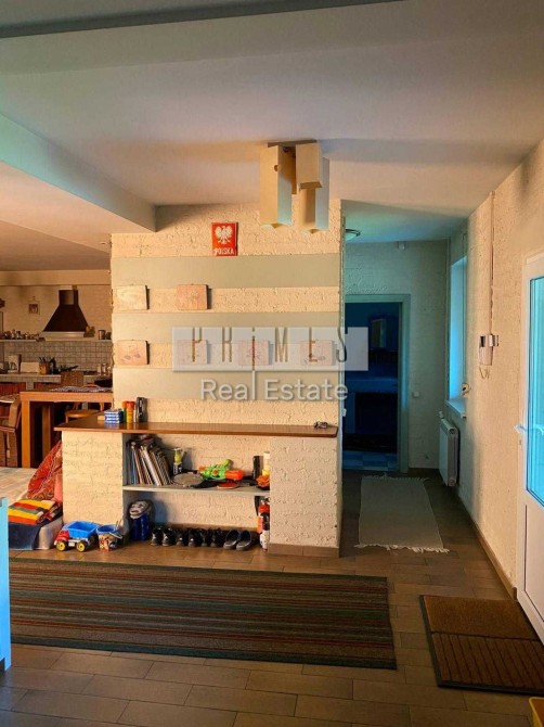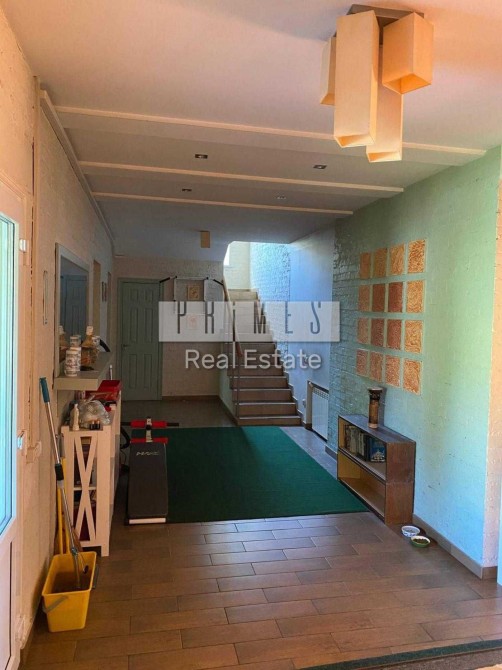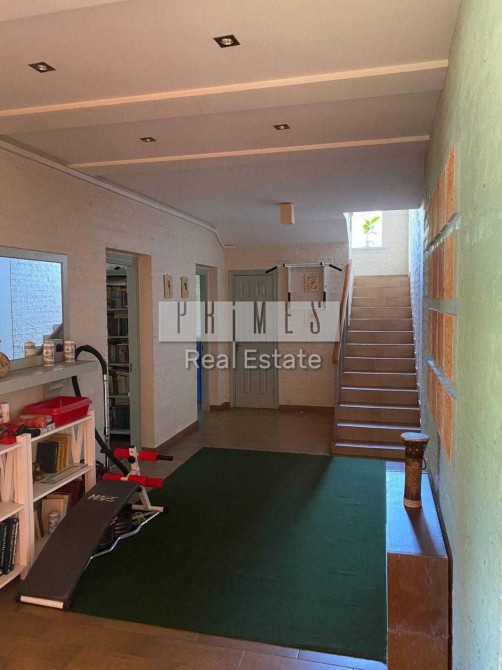 На 1-му поверсі є зала-студія зі столовою та кухнею (у залі великий камін), санвузол з душкабіною, комора, 2 кімнати; велика веранда з каміном та місцевою дроварнею.