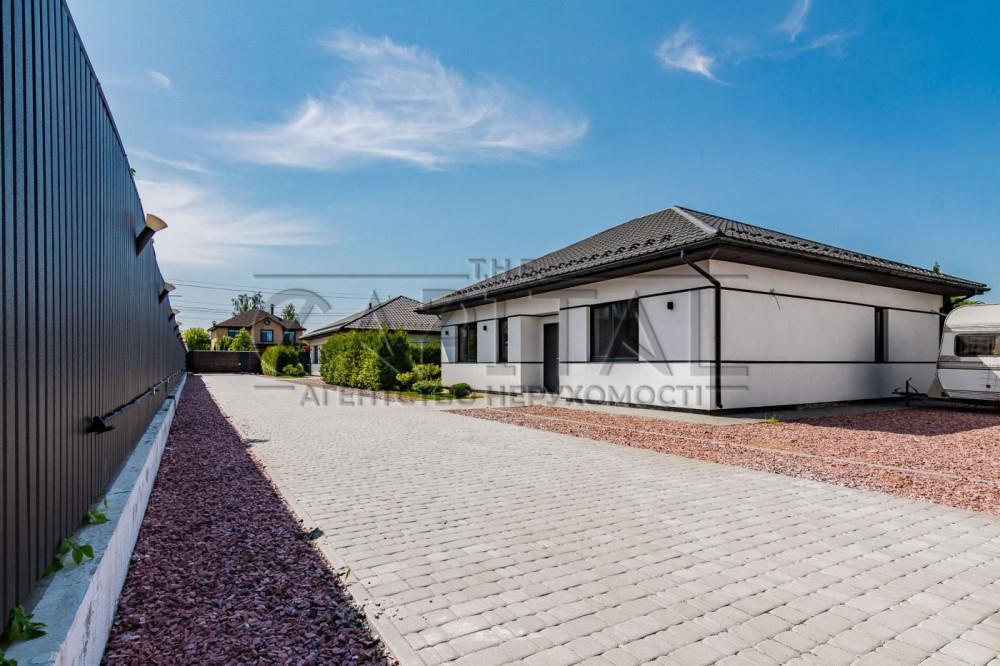 Продаж будинку, КМ SunSet, с. Зазим'яПродажа дома, КМ SunSet, с. ЗазимьеПродаж будинкуДо вашої уваги пропонується чудовий одноповерховий будинок під чистову обробку в КМ SunSet, розташований у с. Зазим'я Броварського району. Площа цього будинку становить 110 квадратних метрів, а розташований він на земельній ділянці площею 5 соток.В будинку зручне та ретельно продумане планування. Тут є санвузол, тераса, вітальня, кухня, передпокій, ванна кімната, три спальні кімнати та хол.Характеристики будинку: • Фундамент: монолітно-залізобетонний каркас;• Зовнішні стіни: газоблок товщиною 300 міліметрів;• Міжкімнатні стіни: газоблок товщиною 100 міліметрів;• Стіни ванних кімнат: гідроізоляція газоблоку;• Перекриття: монолітне залізобетонне;• Сходові марші: монолітні залізобетонні;• Покрівля: металочерепиця відомого італійського виробника, матова/цинк;• Вікна: Rehau Euro-Design 70 з п'ятьма камерами;• Вхідні двері: броньовані, оздоблені шпоном;• Утеплення: базальтова вата;• Опалення: електричний котел;• Водопостачання: автономне.Крім того, ділянку обладнано системою автоматичного поливу, а в будинку встановлено автоматичні ролети на вікнах, теплі підлоги та три кондиціонери. Також є швидкісний інтернет.Котеджне містечко має 3.5 соток загального простору з облаштованою зоною барбекю, а також власний вихід до озера, де можна насолоджуватися відпочинком на природі. На протилежному березі гарний ліс, що додасть затишку.Всі суміжні ділянки вже забудовані сучасними котеджами високого класу, тому ви матимете чудових сусідів, які цінують комфорт і тишу. Додатково, будинки в комплексі розділені живоплотом, тому ви не бачитимете з вікон своїх сусідів.У містечку все продумано до дрібниць, починаючи від виведення під генератор та закінчуючи готовими комунікаціями для вашої майбутньої лазні. Будинки обладнані технологією «Розумний будинок».Крім цього, за 5 хвилин їзди автомобілем є все необхідне:- Садок та школа- Супермаркети- Кав'ярні та ресторани- Аптеки- Спортивний центрНе вагайтеся та скористайтеся цією чудовою можливістю! Запрошуємо на перегляд.#A3747