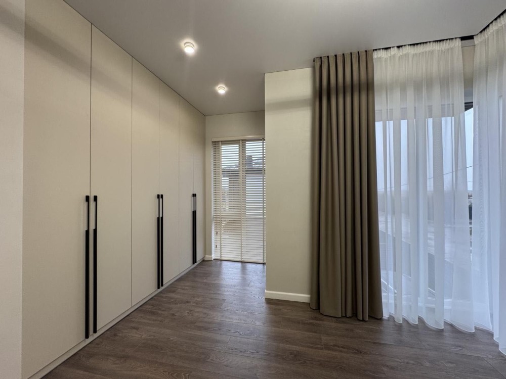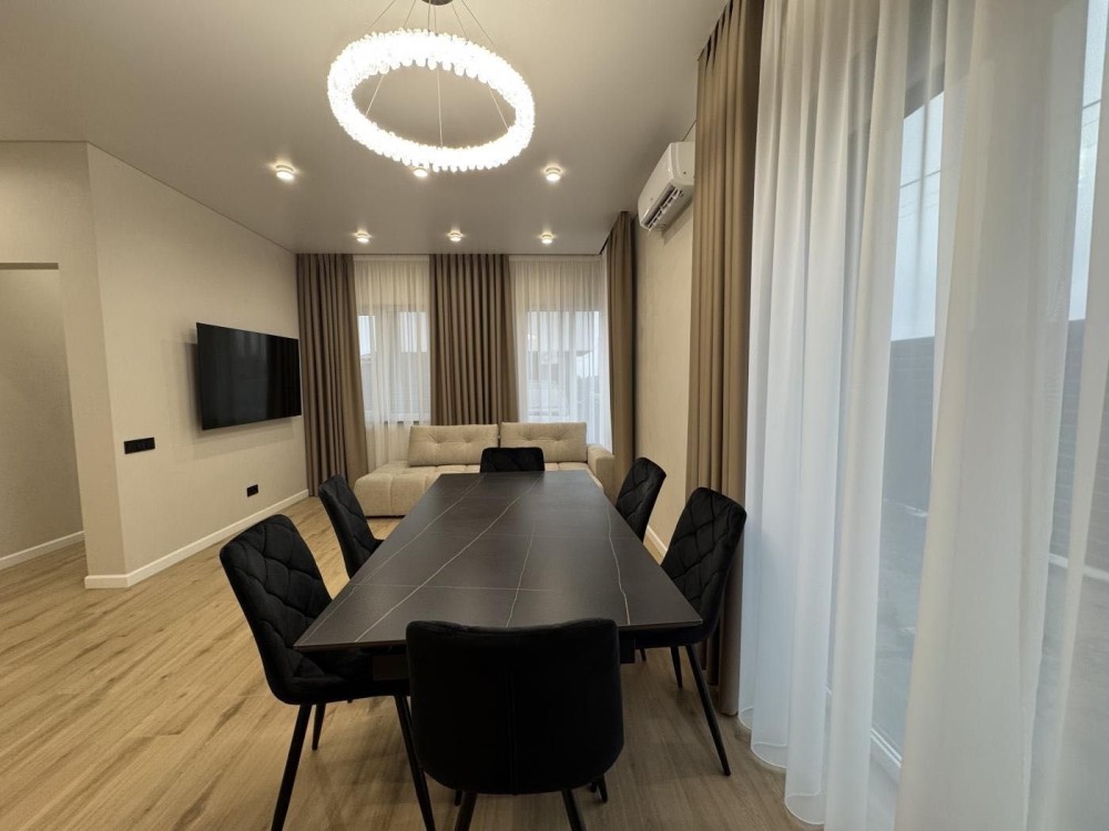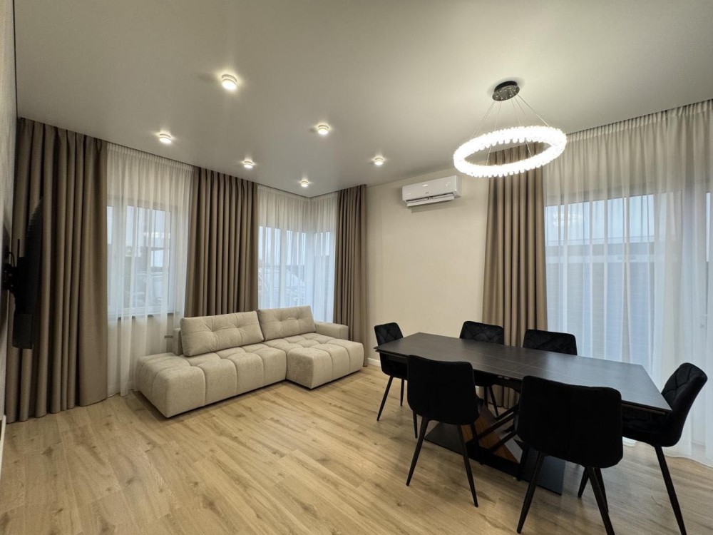 Квадруплекс – будинок, поділений на 4 окремі секції з власним входом, двором і паркомісцем. Кожна секція повністю готова до життя: ремонт, меблі та техніка (холодильник, газова плита, мікрохвильова та духова піч). У вітальні – стіл зі стільцями та затишні меблі, санвузли обладнані сантехнікою, є штори та люстри.