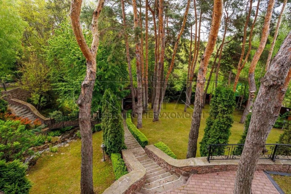 Ділянка дуже красива, видова, з вражаючим ландшафтним дизайном. Корабельні сосни повністю оточують будинок. Велика кількість декоративних насаджень, рулонний газон і надзвичайно гарний водоспад, що впадає в озеро з різнокольоровими рибками та водяними ліліями, створюють атмосферу затишку та релаксу.