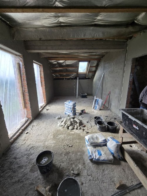 Простінки—цегла. Штукатурка—цементно-піщана. Стяжка—човникова.