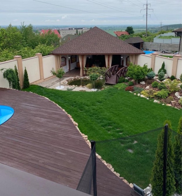 Встановлений відеонагляд та система охорони по всьому периметру подвірʼя.По всій площі ділянки зроблено ландшафтний дизайн з використанням більше ніж 200 різновидів рослин, також змонтований автоматичний полив газону.