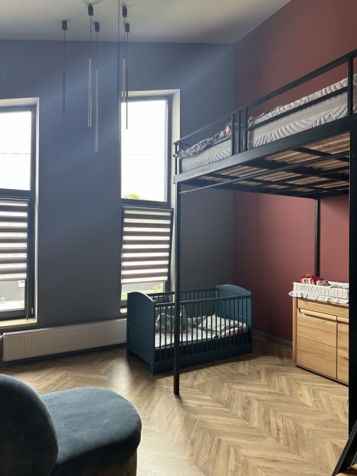 три окремі кімнати , простора кухня (21,4 кв м) з виходом на терасу, велика вітальня, ванна кімна, вбиральня, гардеробна, дві комори.