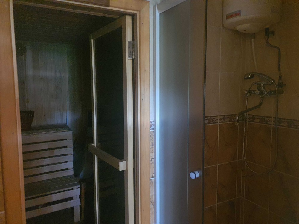 39319 Продам будинок, р-н Лезнево, за три хвилини ходьби до зупинки. Загальна площа 81,9 м2, житлова 50,2. На 8 сотках розташовані два будинки. У житловому — 4 кімнати, кухня, санвузол. Є вихід на мансардний поверх. У гостьовому — прихожа, кухня та сауна. Опалення індивідуальне. Є газовий та електричний котел (лічильник день/ніч). Тепла підлога кухня, коридор та с/в. Всі меблі та техніка залишаються, діючий камін. Дах — металочерепиця. На території також є комора, погріб та гараж. Територія рівна та доглянута. Кадастровий номер 6810100000:20:002:0156