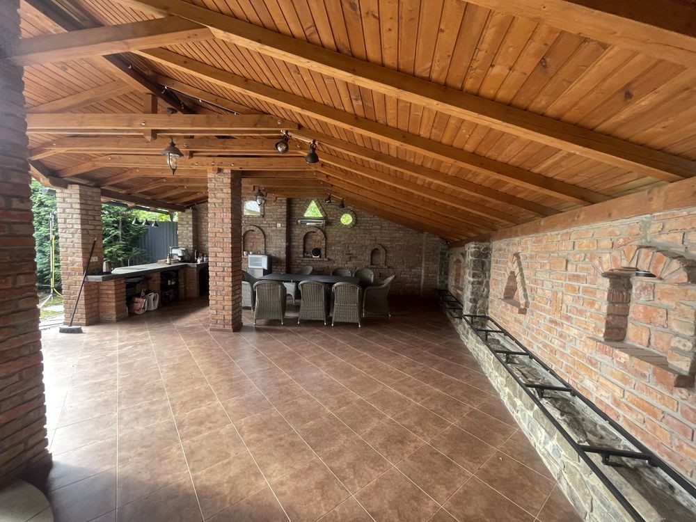 Будинок збудований з цегли , гараж на два авто,підвал, закрита тераса, зона відпочинку, авто полив, відео нагляд.