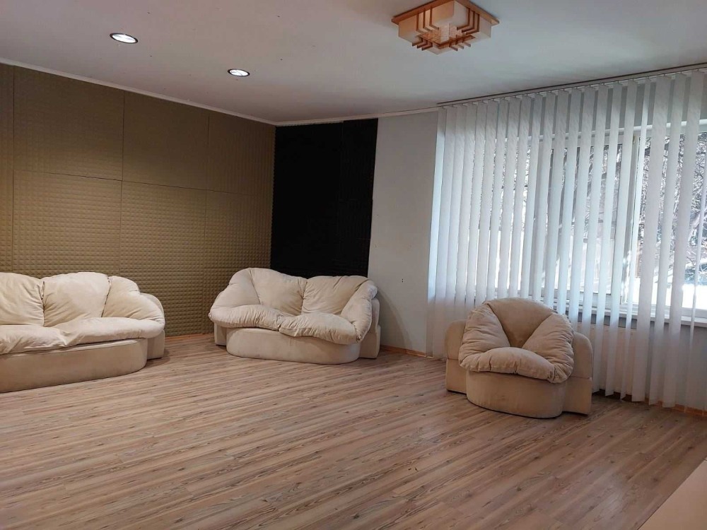 Будинок, загальною площею 392 м2, складається з 2-х частин: житлової та офісної. Офісна частина має 2 поверхи та вміщує просторі кабінети (44м2, 29м2, 14м2, 39м2, 37м2), гардеробну, санвузли, кухню. З кожного кабінета є вихід на балкон.