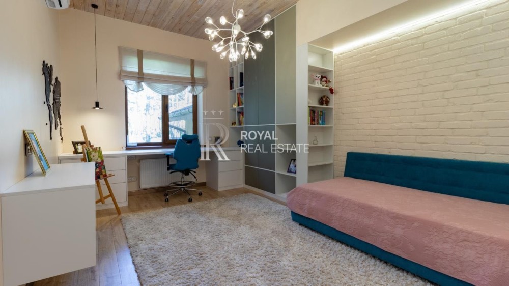 2 дитячі спальні, санвузол, цокольне приміщення: кінотеатр, кабінет/бібліотека/ігрова.