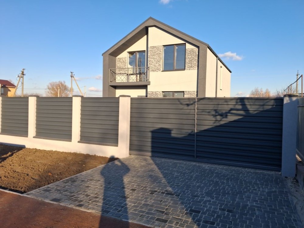 -Паркан по всій ділянці, відкатні ворота.