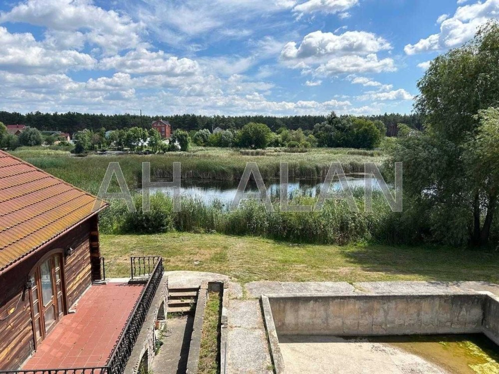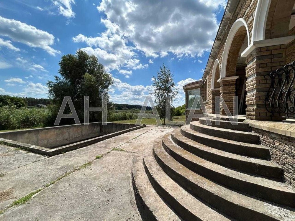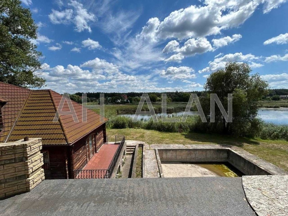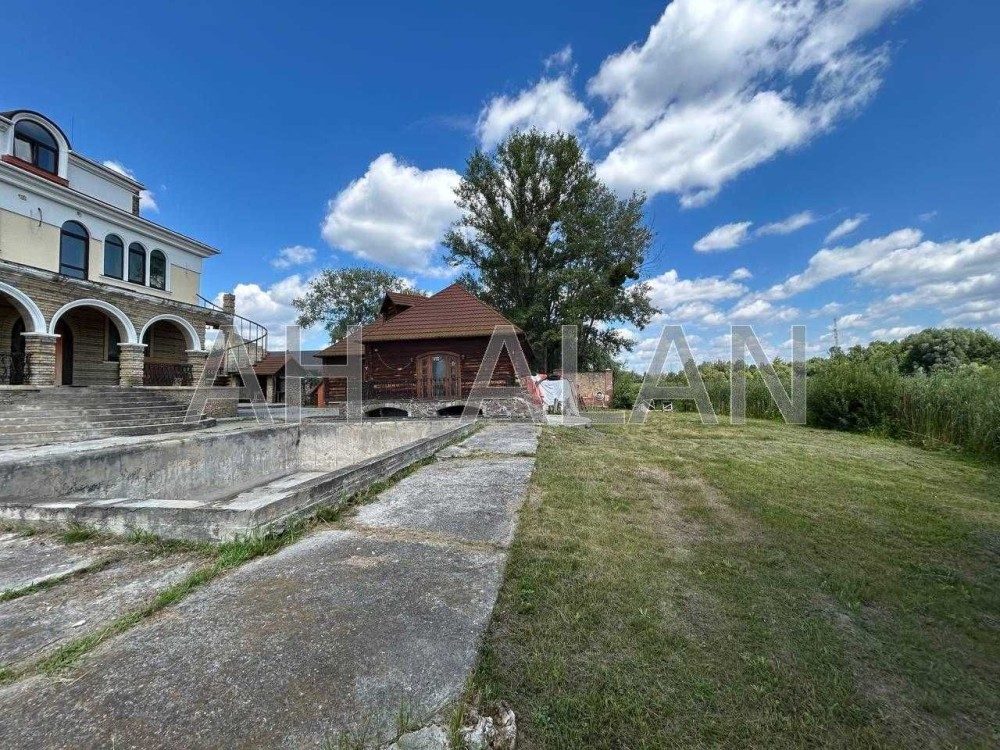 Загальна площа будинку 753 м2. Загальна площа будівель 2628 м2. На території крита гриль-зонана, лазня із сауною 136 м2 та басейном, санвузлами, будинок охорони, великий вольєр, капітальний басейн, сад. Підлога паркет, стіни штукатурка, вікна металопластикові, стеля підвисна. Ділянка 26 соток. З дільниці вихід на озеро. Будинок з ремонтом усередині. Ідеально підійде під готельні номери, відпочинкову базу, реабілітаційний центр. На кожному поверсі зоновані кімнати з туалетами та власними кухнями. Усі комунікації вже заведено у будівлю: газ, світло, вода. Двоє автоматичних воріт, до 30 парко місць на території. Є можливість зробити свій пляж. Опалення газове, каналізація септик, вода свердловина. Двір тротуарної плитки, газон.