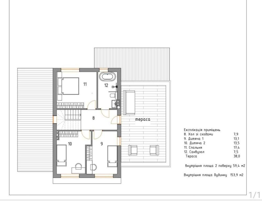 Загальна площа 153.9м2 + 2ві тераси 63,7м2
