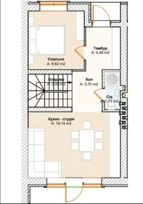 Чотири кімнати, два санвузли, кухня -вітальня з виходом на задній двір.