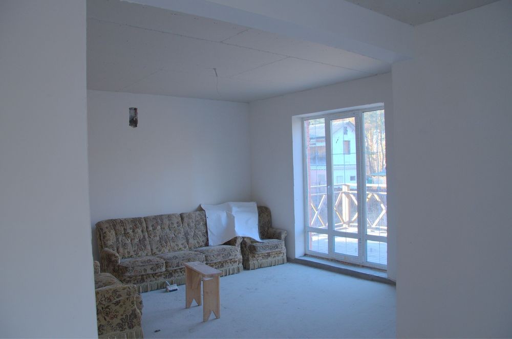 Чистове оздоблення стін, стяжка, стеля підшита гіпсокартоном.