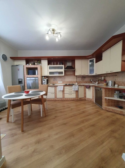 Другий поверх - три спальні, ванна, просторий гардероб.В будинку залишаються: вмонтовані меблі. На кухні газовий котел, посудомийна машина, холодильник, газова поверхня, духова піч, мікрохвильова.