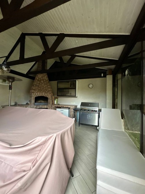 Три окремі кімнати, кухня-вітальня, два санвузли. Окрема зона барбекю, крита тераса, басейн на території, навіс на 2 авто, два підвали та горище.