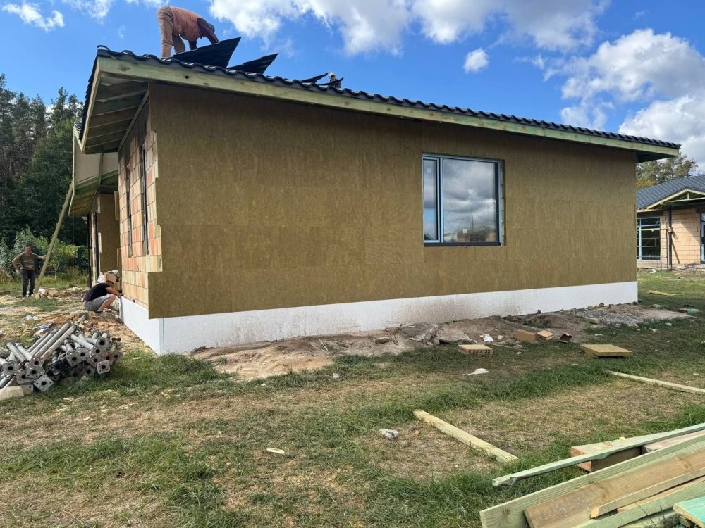 Будинки зведені з керамічного блоку, утеплені мінеральною ватою з енергоефективними вікнами і дахом з металочерепиці.