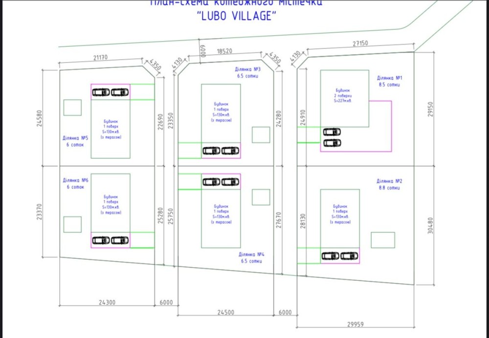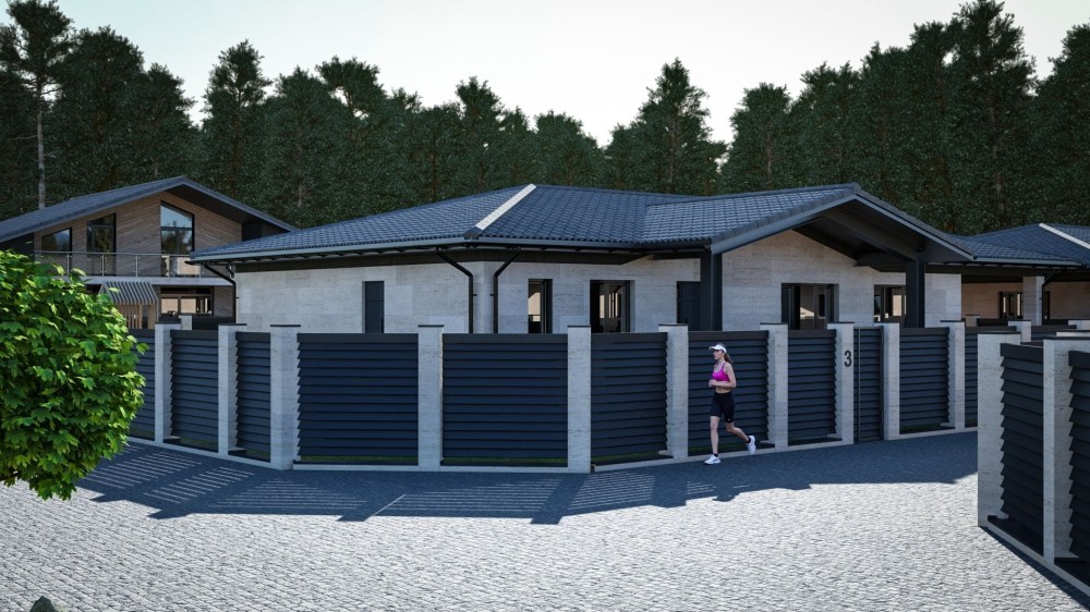 Комплекс складається з 6 будинків, на великих ділянках до 8,8 соток з панорамними вікнами, натуральними матеріалами та сучасною архітектурою.