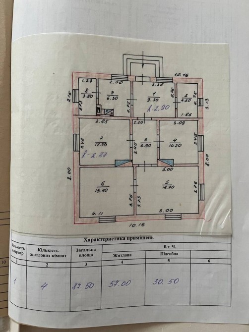 4 кімнати, передпокій, коридор, санвузол, кухня, підсобна господарча кімната. Високі стелі - 2,9м. Ділянка 10 соток, на території гараж, погріб та надвірні господарські споруди. Від власника.