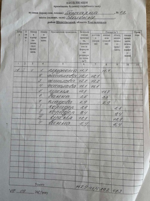 Площа будинку 112 кв м, 3 окремих кімнати, кухня, веранда, ванна, туалет, комора. Окремо є гараж, літня кухня і сарай. Ділянка 18 соток, сад. Будинок придатний до життя, добротний. Орієнтовна вартість 27000 у. о., розумний торг.