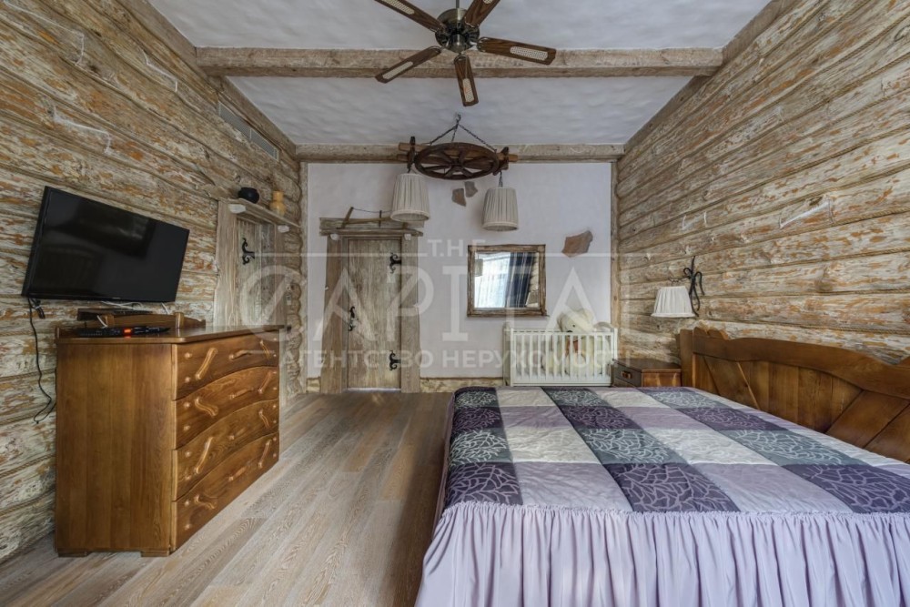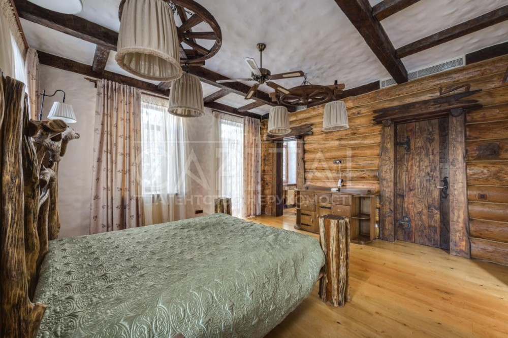 Продаж 2-поверхового будинку в с. Лебедівка, р-н Вишгороду.Продажа 2-этажного дома в с. Лебедевка, Вышгородский р-н.Пропонуємо на продаж затишний маєток у стилі Шале.Розташоване у районі Вишгороду, всього в 30 км. від Києва (Лебедівка) Закрите котеджне містечко, що охороняється, сусіднє з Riviera Village, знаходиться поряд з Київським морем і має власний вихід на канал.1,4 гектари землі оточені сосновим лісом, де є все, що потрібно для комфортного життя:Це саме те місце, де можна максимально наблизитись до природи та стати з нею одним цілим. З вікон відкривається вид на озеро та хвойний ліс, що огортає своїм ароматом усе навколо. Будинок стане втіленням усіх ваших бажань. Цей великий, просторий, наповнений світлом та повітрям будинок – мрія для тих, хто любить природу та самоту.Він знаходиться в сосновому лісі прямо серед дикої природи. І в той же час це закрите котеджне селище, клубного типу «Dream Village».На охоронюваній та огородженій території знаходиться всього 25 ділянок, більша частина з яких заселена. Усі ділянки на першій лінії обвідного каналу Дніпра, а перед ними знаходиться 40 гектарів лісу, що оточує містечко. Екологічно чисте місце з хвойними лісами та унікальним кліматом.Асфальтований під'їзд та вуличне освітлення. Котеджне містечко знаходиться неподалік села Лебедівка та клубного селища "Riviera Village", за 15 хв їзди від Києва.Основний будинок – 555 м2, 4 спальні з гардеробними та з/в, кабінет, спортзал, кухня, їдальня, вітальня з каміном, обідня зона з терасою. Будинок розташований в один рівень.Гостьовий будинок – 120 м2.Російська Лазня з липового дерева - 70 м2, в якій є парильня, джакузі, кімната відпочинку, вихід прямо на воду.Відкритий басейн, чан, тандир, зона барбекю, стайні, теплиці, вольєри для собак та власне озеро.Плодоносний сад, а також привезені та висаджені Кримські сосни.На території, на березі каналу є підйомний пристрій для катера (Сліп) є похилим майданчиком з рейками, візком і лебідкою для спуску катера на воду або підйому з води.#31.585.564