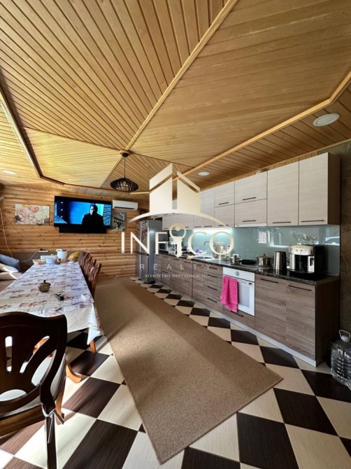 В гостьовому будинку 65 м.кв. знаходиться велика кухня студія, простора спальня , санвузол суміжний, є сучасна піч та лежанка. По всьому гостьовому будинку тепла підлога.