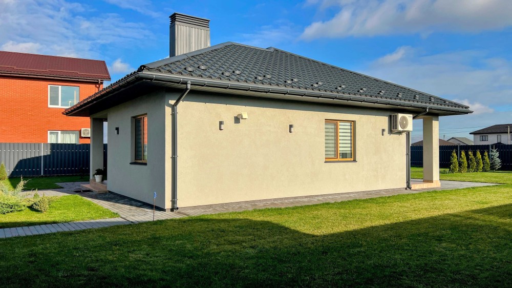 Будинок побудований із якісних газобетонних блоків Д500, товщина стін — 300 мм, додатково утеплений 10 см пінопластом.